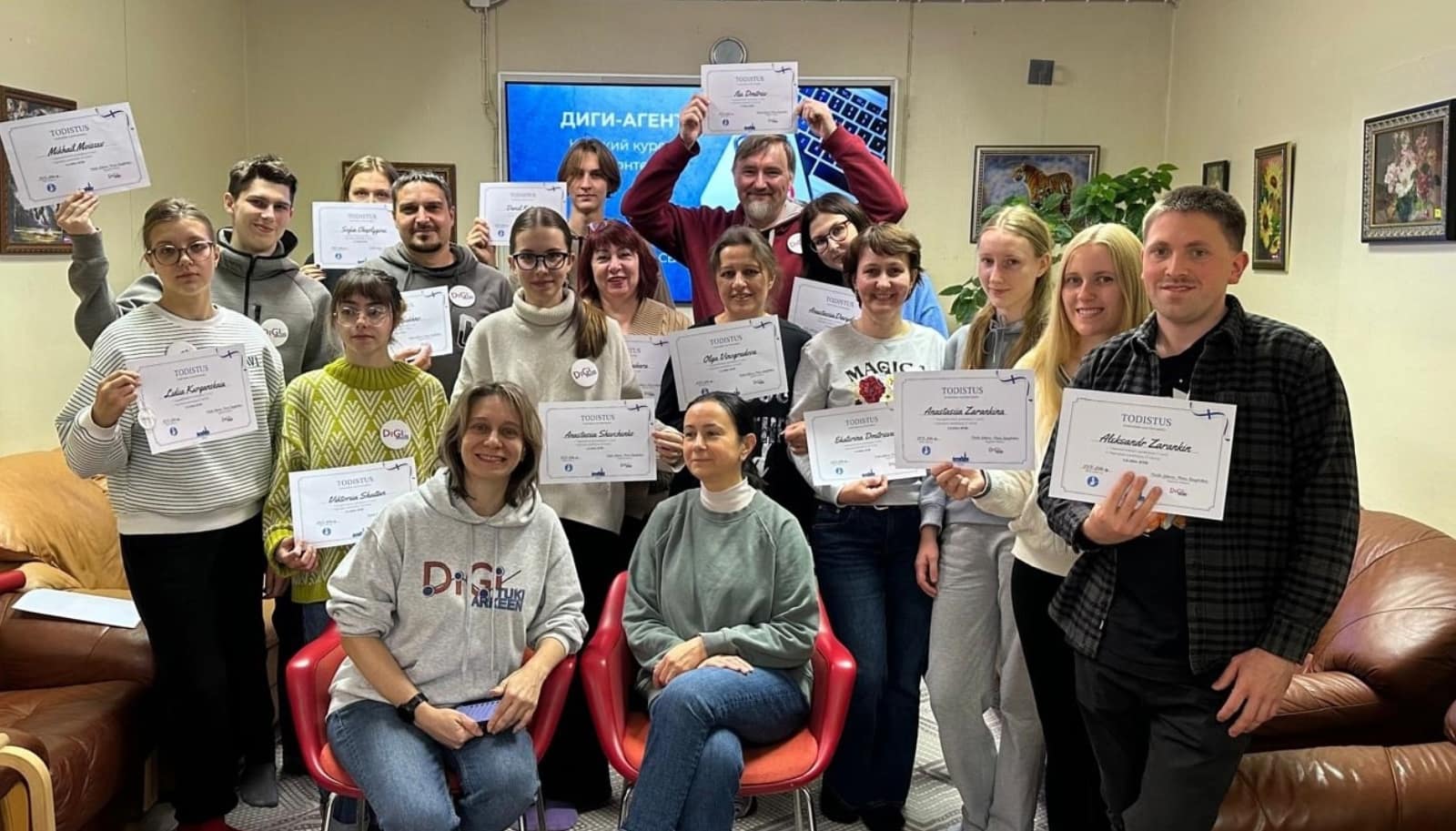 Kaikki 16 osallistujaa saivat diplomin suomeksi onnistuneesta koulutuksesta.