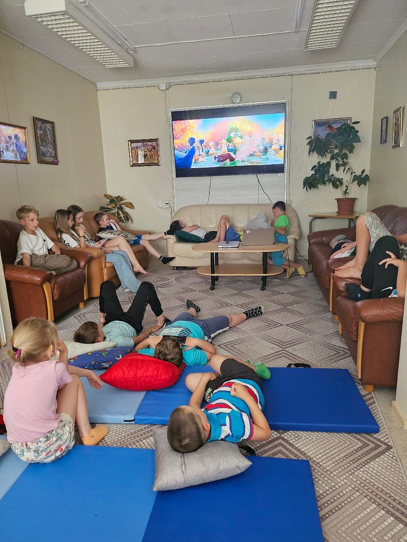 Meillä muodostui kaksi joukkuetta: Pingviinit ja Vilinät.Tänään juhlimme myös Denis S.:n syntymäpäivää. Hän täytti 9 vuotta ja tarjosi muille lapsille makeisia ja mehua. Lisäksi jokainen lapsi sai häneltä lahjaksi saippuakuplia. Päivä oli iloinen ja tunnelma lämmin.Huomenna lapset opettelevat tekemään lyhyitä hauskoja videoita – he toimivat itse käsikirjoittajina, kuvaajina ja näyttelijöinä.